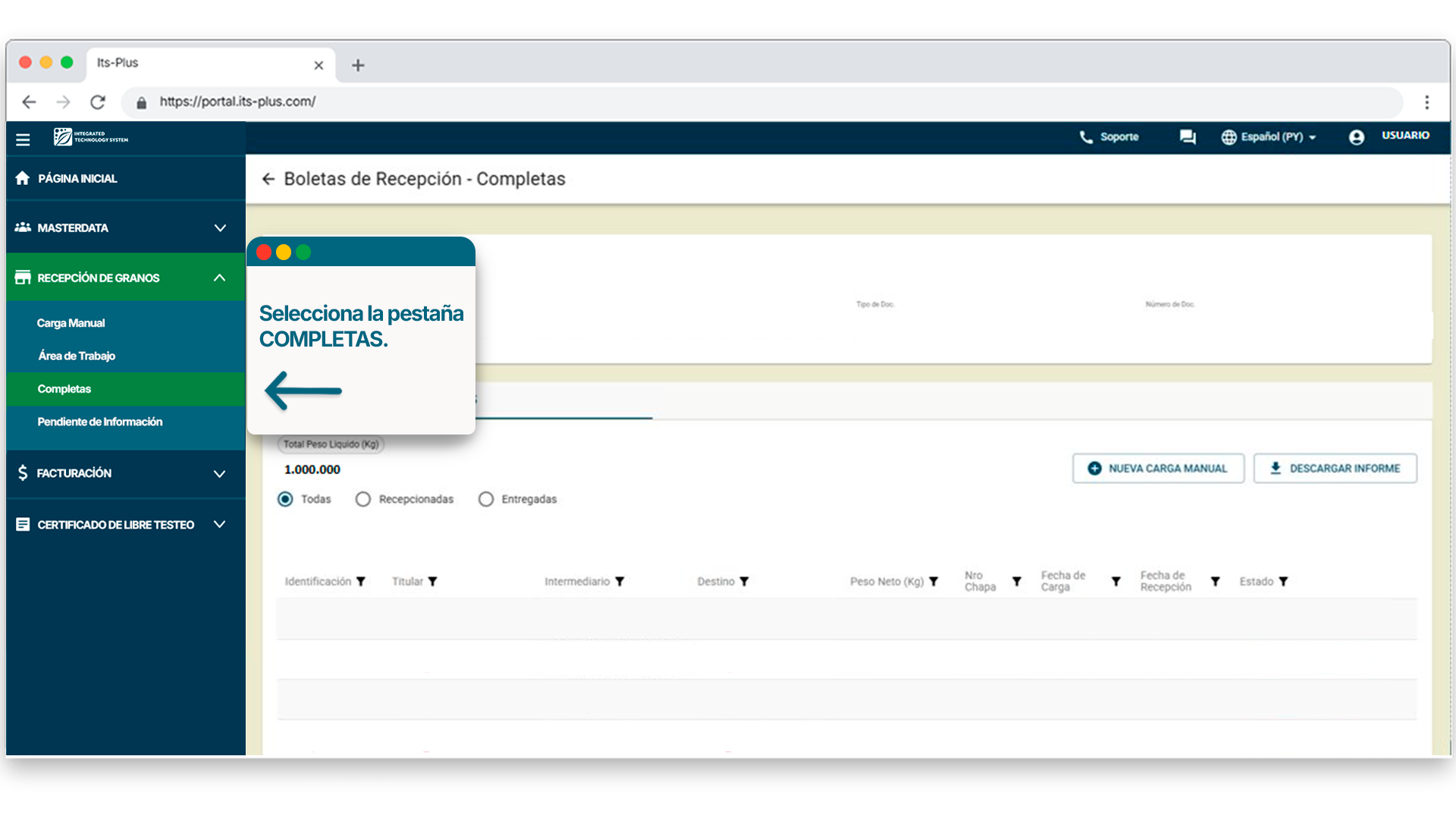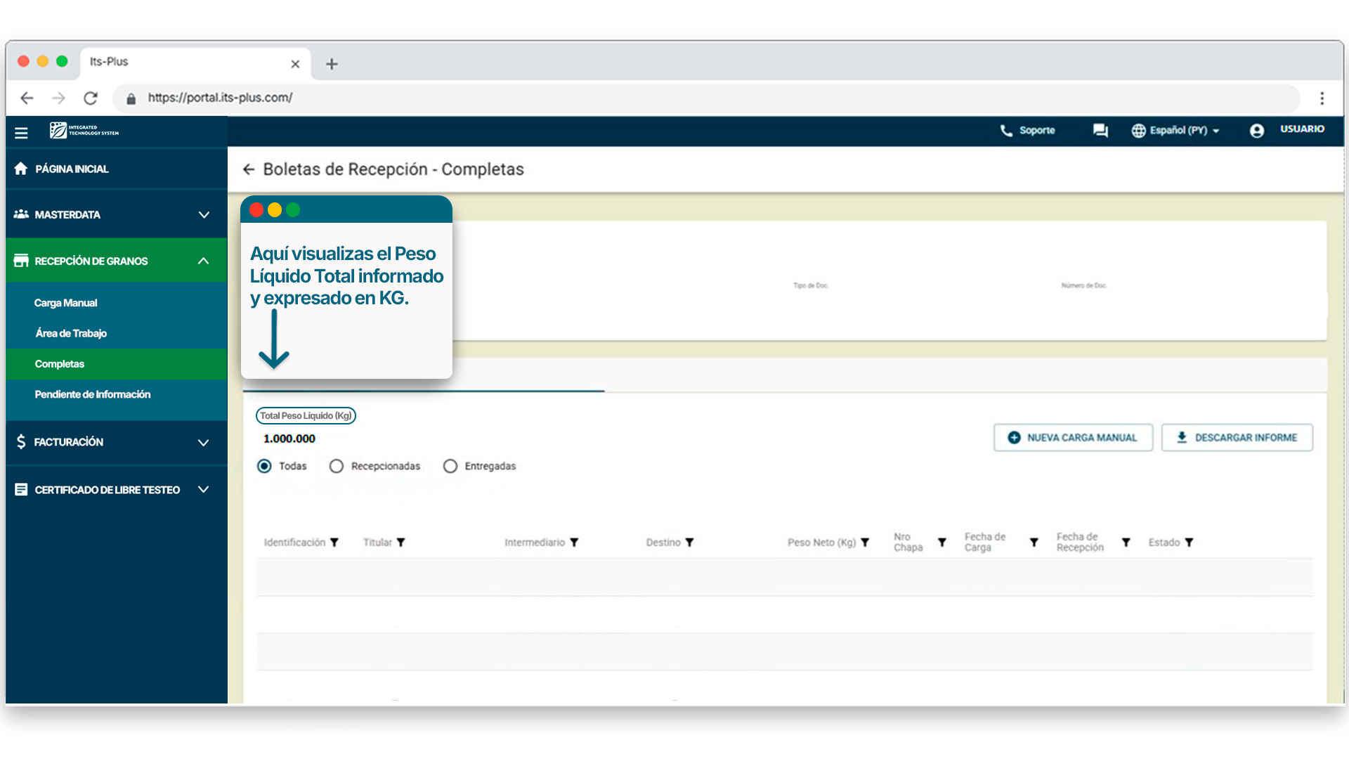 ¡Recuerda que puedes visualizar el detalle de cada una de las cargas en la bandeja de completas!