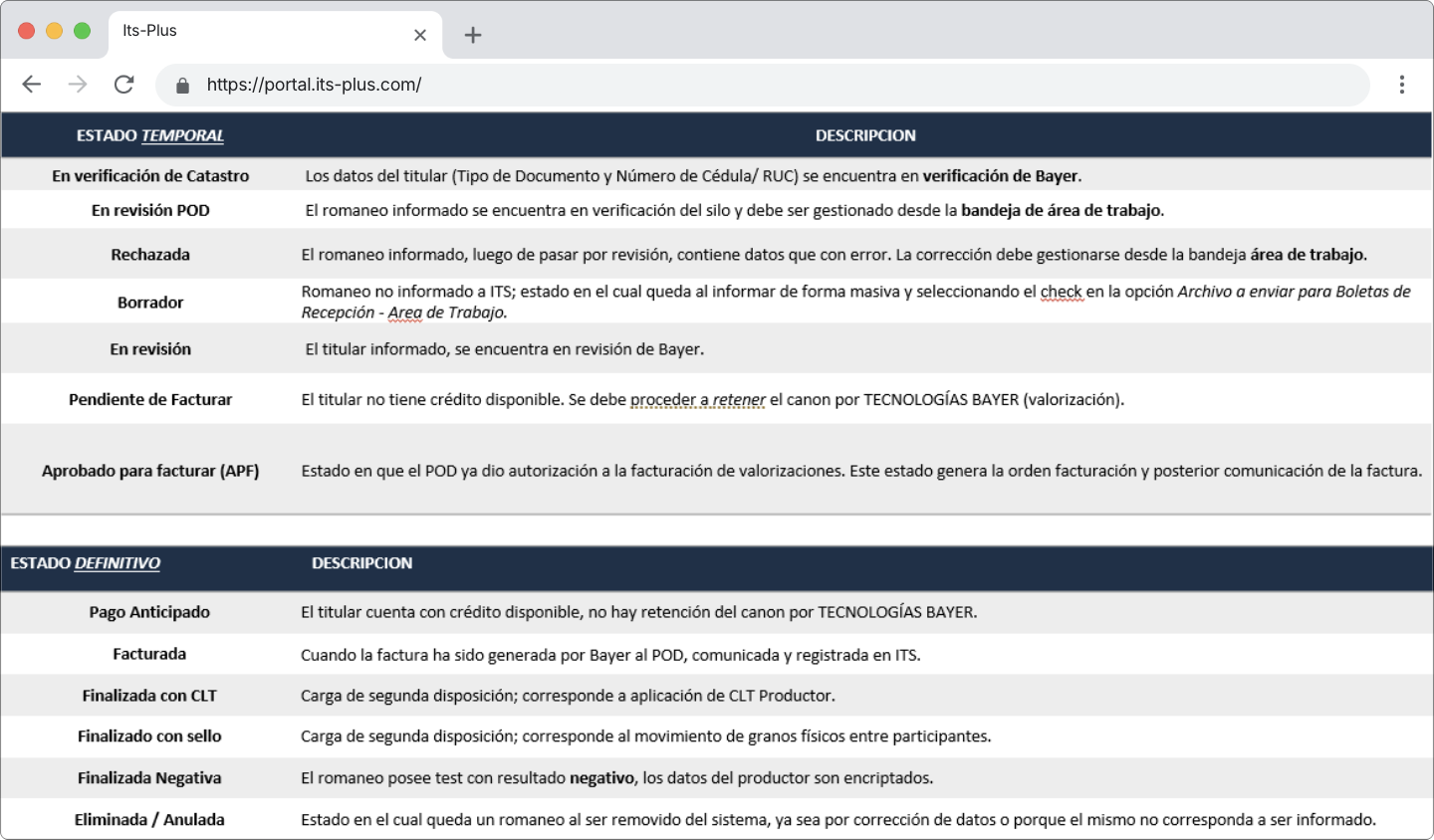 Te mostraremos como identificar los datos presentes en la pestaña de las Boletas de Recepción, como visualizarlos según el estado en que se encuentran y el significado de cada uno.