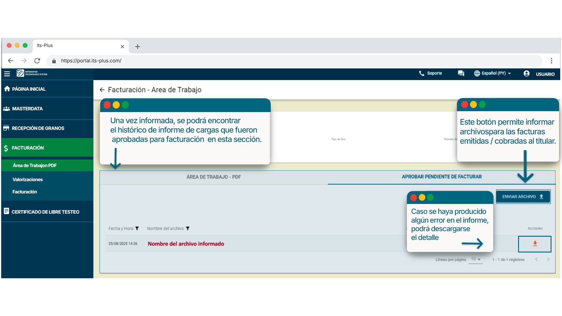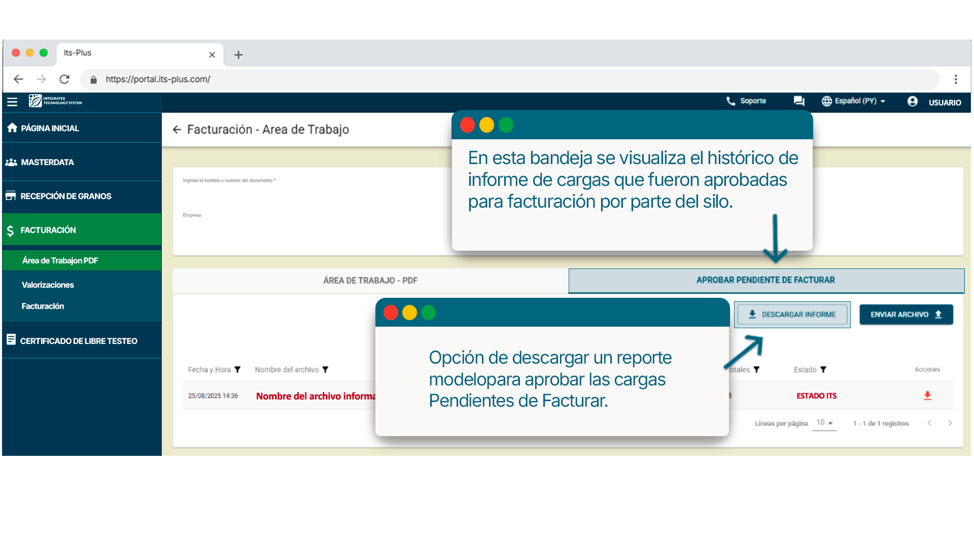 Te mostraremos como visualizar las cargas que se encuentran en estado de Pendientes de Facturar y como informarlas para que pasen a estado Facturado.